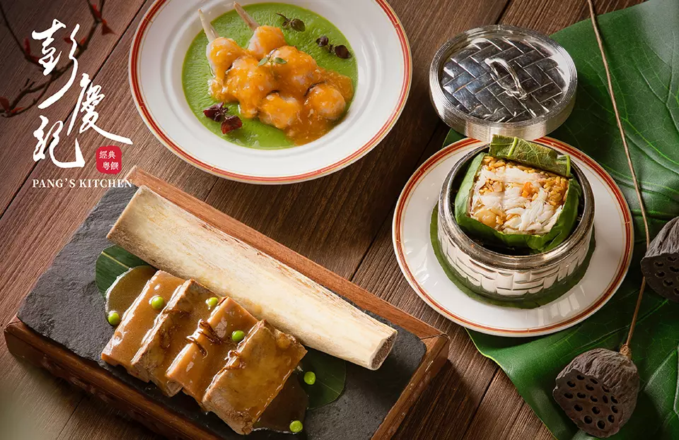六月荷花,一池盛夏。荷花不僅賞心悅目,而且每一個部分都是寶。踏入荷花盛開的季節,彭慶記主廚潘浩鍇師傅特別以荷葉、蓮子及蓮帶入饌,打造一席色香味俱佳的盛宴,旨在把滿池荷花的美意融入到您的味覺體驗之中。特別推介傳統手法炮製的荷香鮑魚百子雞,淡雅的荷葉香滲透肉質嫩滑的清遠雞內,令人垂涎。另外,口感鮮爽的藕帶玉簪龍皇球,是以手打海蝦滑裹著荷花幼嫩的根狀莖清蒸而成,爽甜美味。