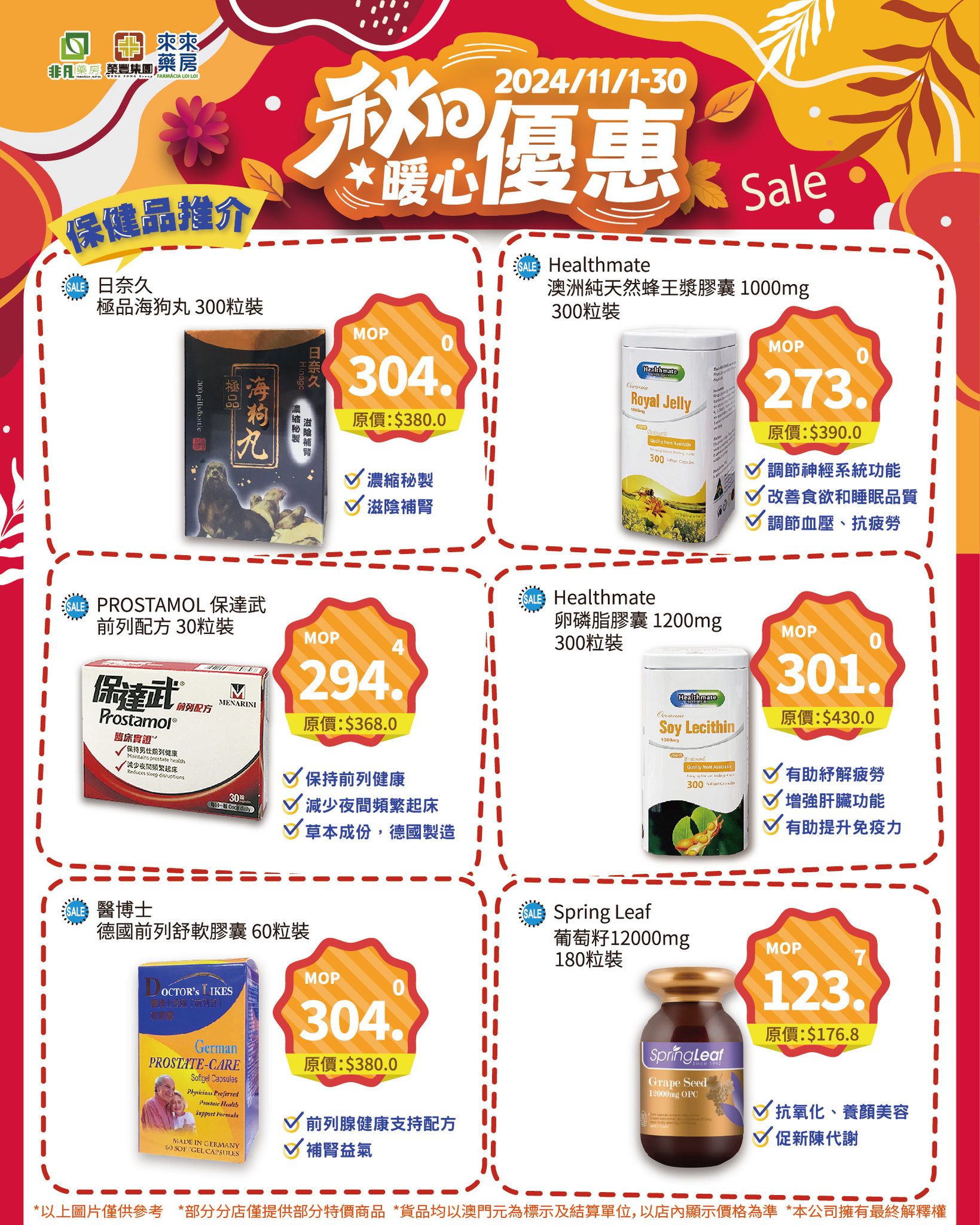 秋日薄暮,藏着金色的豐收喜悦🥰今期非凡精選【秋日暖心優惠】準備多款健康好物推介您!仲有勁抵日用品優惠~快嚟揀定心水好物啦!