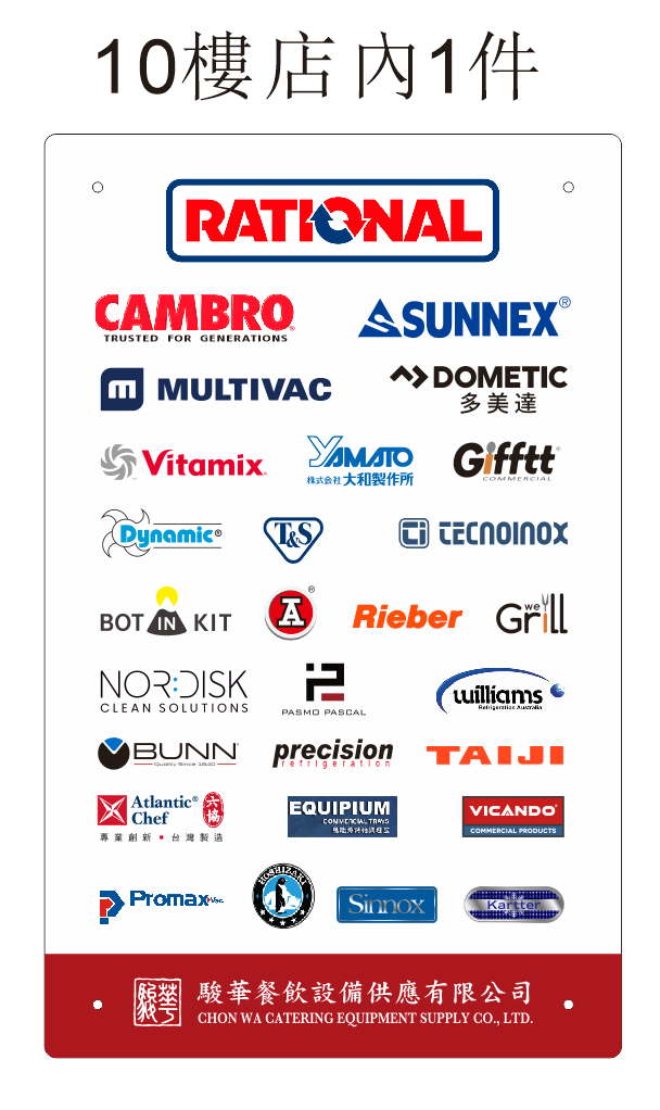 目前我們是RATIONAL Combi Oven (德國) , Multivac Vacuum Machine (德國) ,Vitamix (美國) ,Cambro (美國) ,Dometic(瑞典) ,Yamato(日本) 在澳門的代理商。