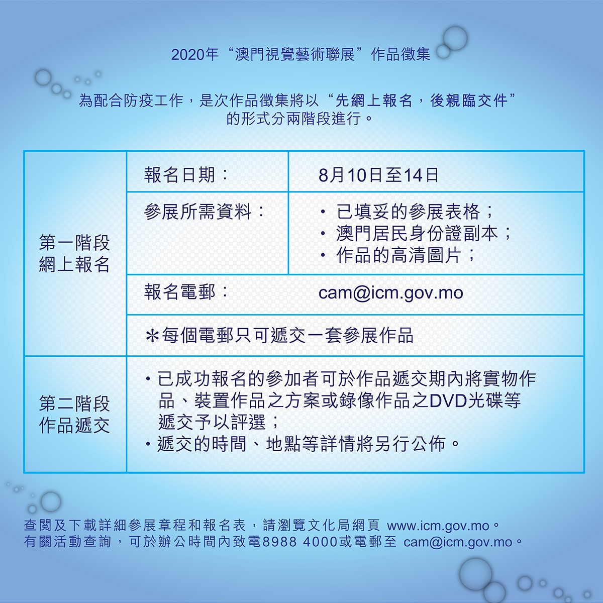 查詢:cam@icm.gov.mo / 8988 4000(辦公時間內)