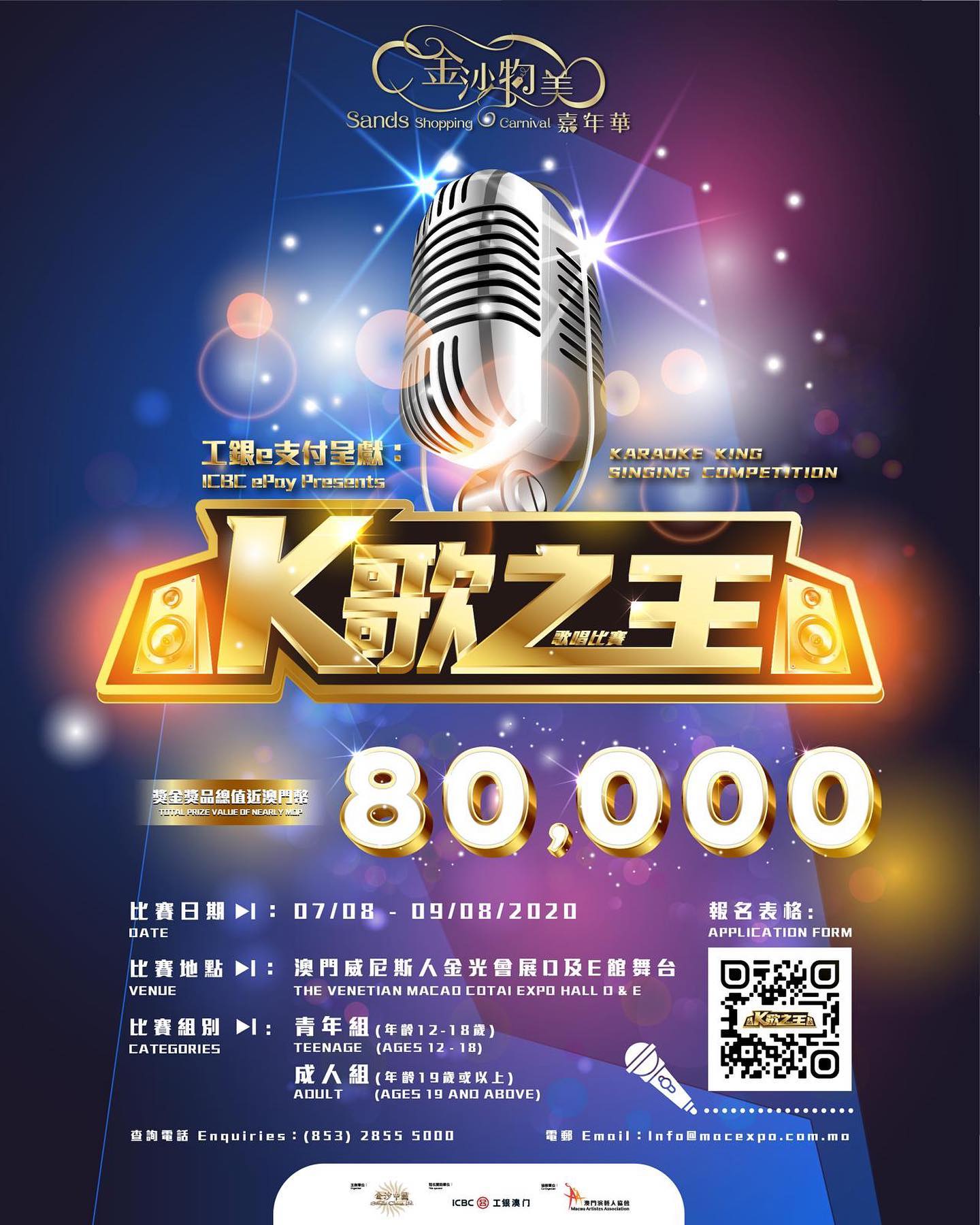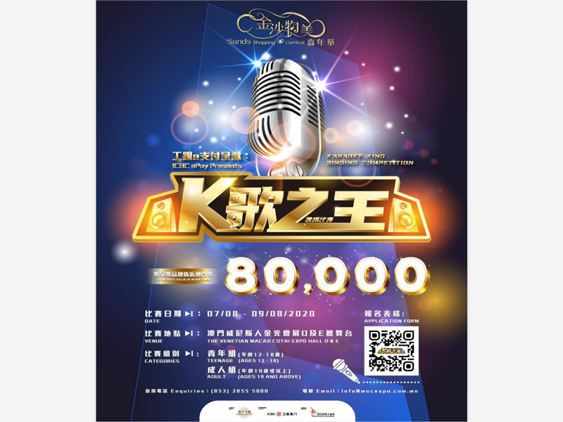 金沙物美嘉年華之「K歌之王歌唱比賽」,比賽開放予澳門居民參與,獎金獎品總值近澳門幣80,000元,馬上行動一展歌喉吧!
